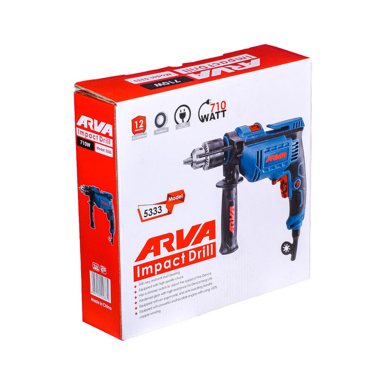 دریل چکشی آروا مدل 5333 یکی از ابزارهای حرفهای و پرقدرت بازار است که برای سوراخکاری در بتن، فلز و چوب طراحی شده. موتور بادوام با سیمپیچی ۱۰۰٪ مسی، توان ۷۱۰ وات و قابلیت تنظیم سرعت، این دستگاه را به انتخابی مطمئن برای کارگاهها و پروژههای ساختمانی تبدیل کرده است.