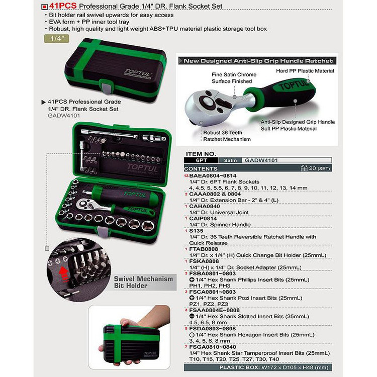 مجموعه 41 عددی آچار بکس تاپ تول کد GADW4101